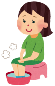1の足湯がお勧めですが、生活スタイルによっては難しいと思いますが日中バケツにお湯をはって10分~20分、途中ぬるくなったらお湯を足すといったことをしていくと、ふくらはぎも柔らかくなり、頭もすっきりしますよ。