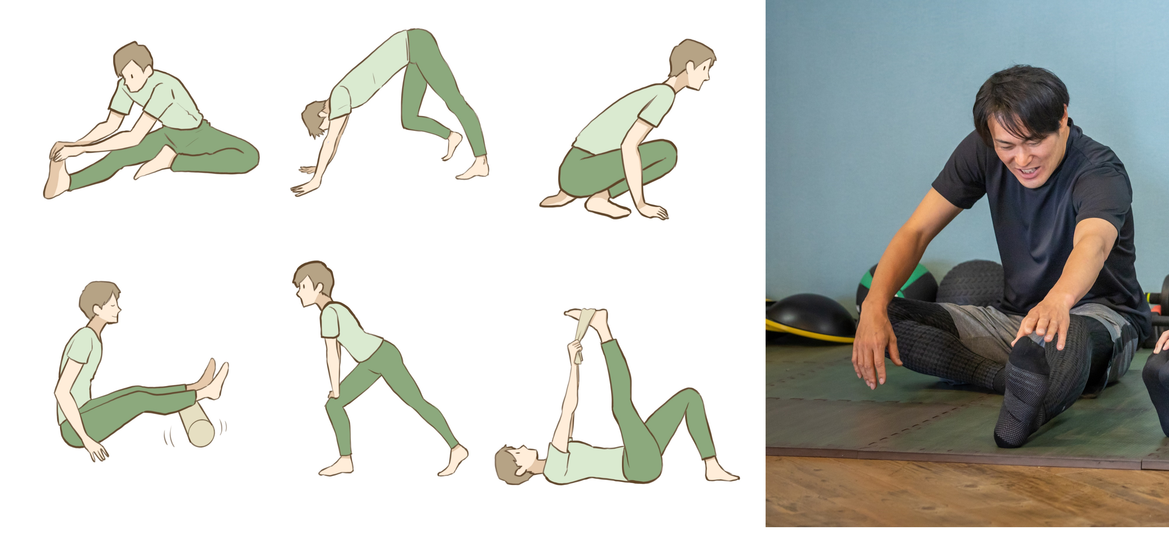 といったことを留意します。ストレッチは地味ですが、継続することで血流増加、柔軟性向上、